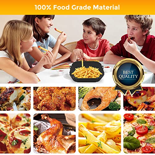 - Reusable Square Air Fryer Silicone Pot:The 8 inch silicone cupcake liners is designed for 4-7QT Air Fryers, Oven, Microwave. It is made of 100% food grade silicone, non-stick material. It can get rid of the inconvenience caused by the disposable parchment paper liners and help you to save cost