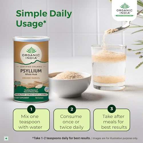 A TATA Product – Organic India Isabgol Whole Psyllium Husk Powder – 100g, With Dietary Fiber, Supports Gut Health & Digestive System, Gluten Free,…