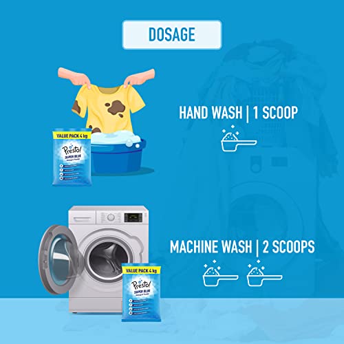 Amazon Brand – Presto! Super Blue Premium Detergent Powder | 8 Kg | 4 Kg X 2 Packs | Removes Tough Stains | Safe And Gentle On Fabrics | Refreshing…