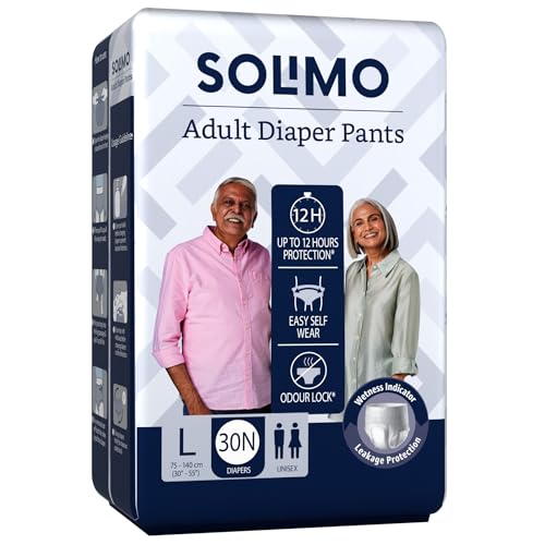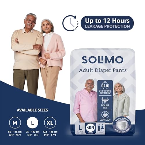 Amazon Brand – Solimo Adult Diapers Pant Style | Large Size | 30 Count | Waist 30-55 Inch (75-140 cm) | Fast Absorption | Leak Proof | Unisex | For…