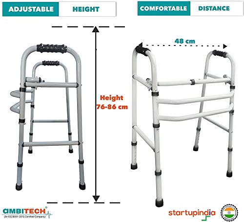 AmbiTech MS Height Adjustable & Double Bar Folding Walker for Adults, Senior Citizens and Patients (Made In India)