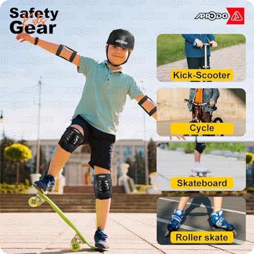 APRODO Kids Protective Set Guard for Skating, Cycling & Skateboarding, (Suitable for Age Group 5 to 12 Years Old) (Black)