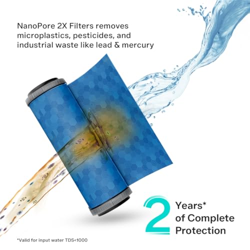 - NanoPore Filter Technology: Ensures complete protection against modern pollutants like pesticides, microplastics, industrial waste like lead and mercury, bacteria, viruses, and cysts for 2 years*.