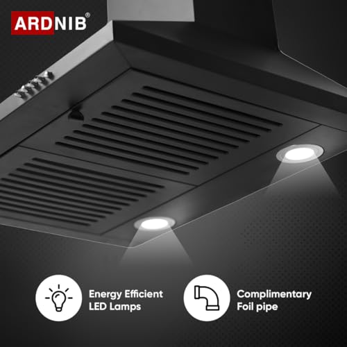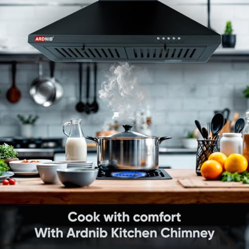 Ardnib 60 cm 1050 m³/hr Wall Mounted Kitchen Chimney (SUPREME BK 60, Baffle Filter, Push Button, Black), 5 Years Motor Warranty | Proudly Made in…