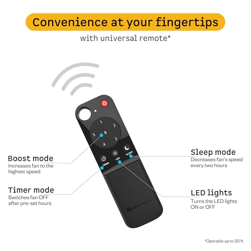 - REMOTE CONTROL CONVENIENCE: Atomberg Ameza comes with a Smart IR Remote for effortless control, allowing you to adjust speed, activate Boost Mode, set timers, or enable Sleep Mode with a single click. This remote is universal across Atomberg fans and does not need to be paired, allowing easy operation.