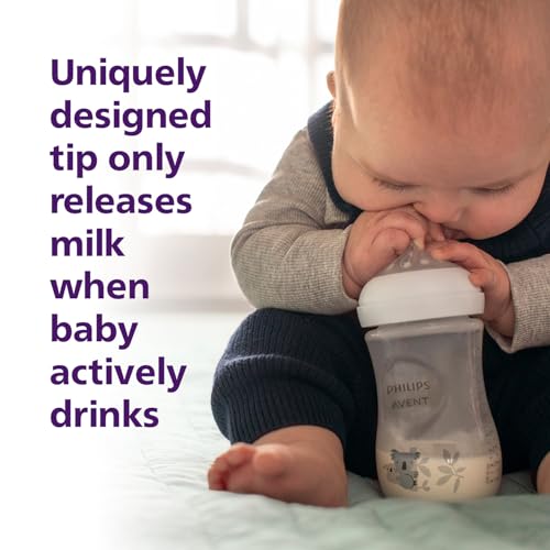 AVENT Philips Natural Response Baby Feeding Bottle – 260Ml Baby Milk Bottle, Bpa Free with Babies 1Month+ Teat (260Ml Koala Bear Print)