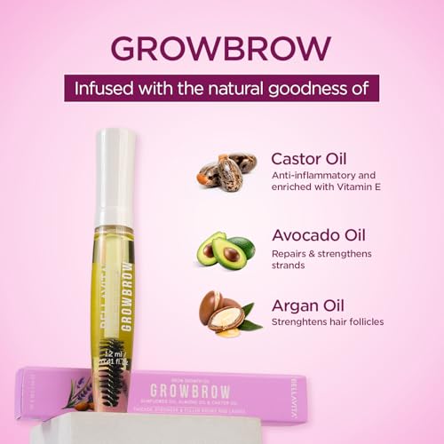 Bella Vita Organic Growbrow – Eyelash, Lashes & Eyebrows Hair Growth & Volume Serum With Castor, Onion Oil & Vitamin E, 12 ML