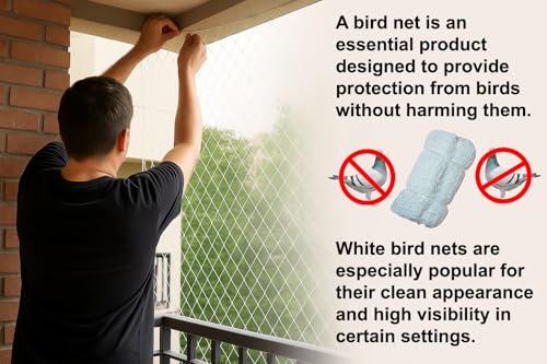BENAVJI Pigeon Nets for Balconies Anti Bird Control Net, Heavy Duty HDPE Mesh Net for Balconies, White Color Size 10FTX6FT