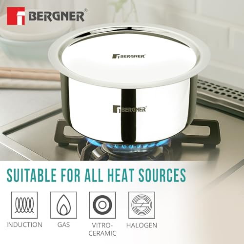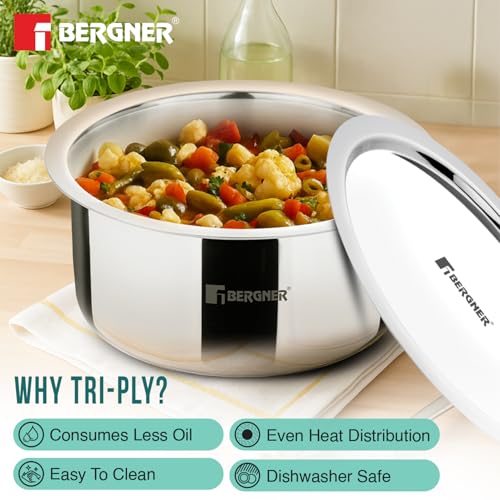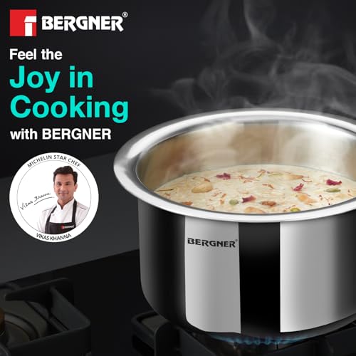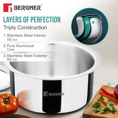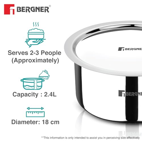 Bergner Argent TriPly Stainless Steel 18cm (2.4 L) Tope with Stainless Steel Lid, Steel Topia/Patila with Stainless Steel Lid, Healthy, Non-Toxic,…