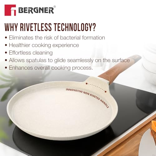 BERGNER Ivory Granite Non-Stick 4 Pcs Cookware Set – 24cm/2.5L Kadai with Lid, 24cm Frypan, 28cm Dosa Tawa, 3-Layer Marble Healthy Coating, PFOA…