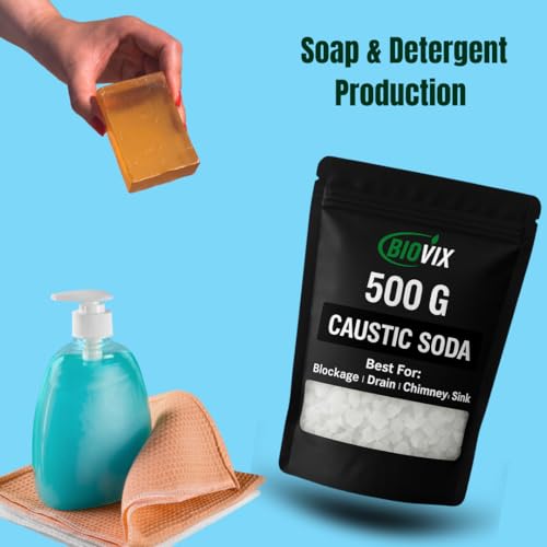 BioVix Pure Caustic Soda Flakes | 470g for Drain Cleaning, Chimney Cleaning, and Soap Making