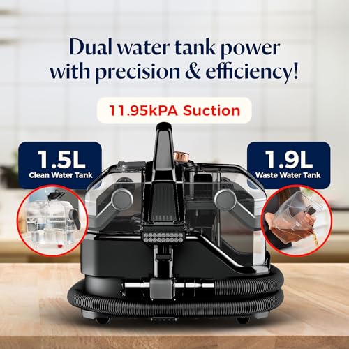 - 🔴 The Portable spotclean vacuum cleaner come Two Tank for Clean & Dirty Water, featuring : A removable water tank for convenient filling and emptying. This system separates clean water from the collected dirt and grime. This allows you to clean with fresh water while the dirty water is kept in a separate tank.