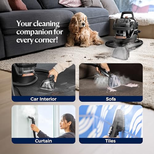 Bissell Portable Wet & Dry Vacuum Cleaner|HydroSteam Technology removes Curry & Tough Stains|Deep Cleans Carpet, Sofa, Curtains, Mattress &…