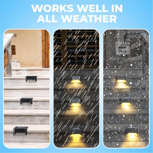 - 2.Wide-Angle LED Lighting – Features a powerful LED design with a broad light spread, ideal for illuminating stairs, steps, fences, railings, and pathways for enhanced visibility. The warm, inviting glow not only improves safety but also enhances the overall ambiance of your outdoor décor. Great for gardens, patios, and entryways.