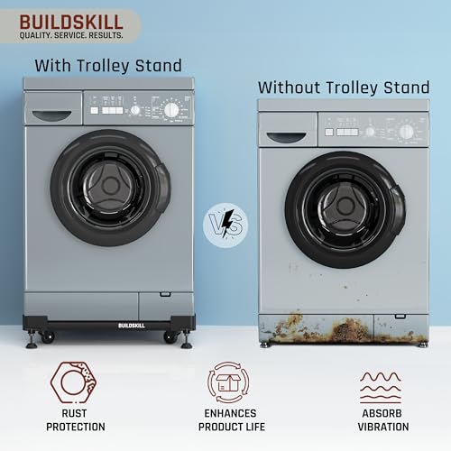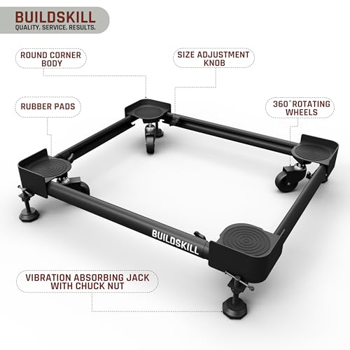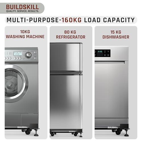 BUILDSKILL 160kg Load Capacity Washing Machine Stand | 360° Rotating Wheels | Adjustable | Absorbs Vibration | Anti-skid Fridge and Dishwasher…