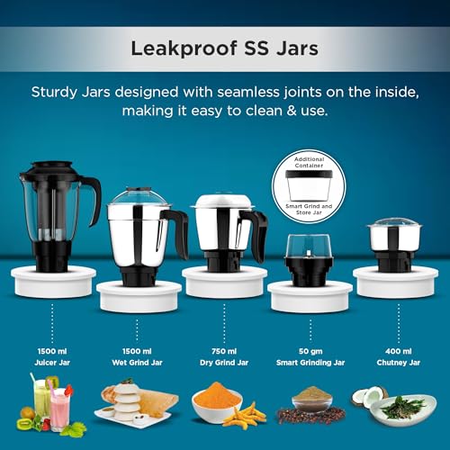 | Special Feature | Anti-Skid, Dishwasher Safe Jars, Overload Protection, Shock Resistant, Superior SS Blades for multi utility grinding & blending |
