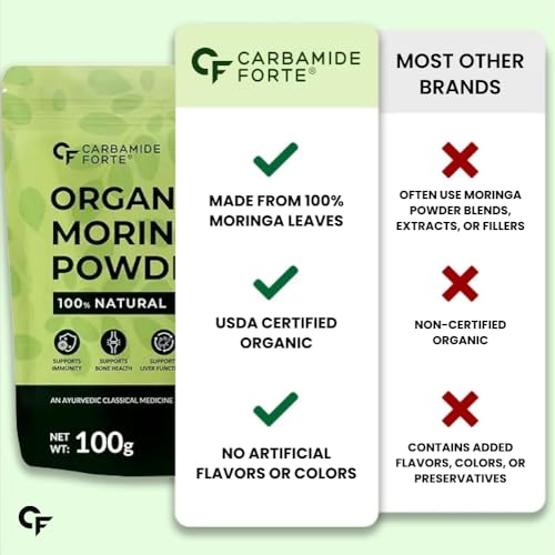 Carbamide Forte 100% Moringa Powder Organic – USDA Certified | Moringa Leaves Powder Organic for Immunity, Digestion & Energy | 100g