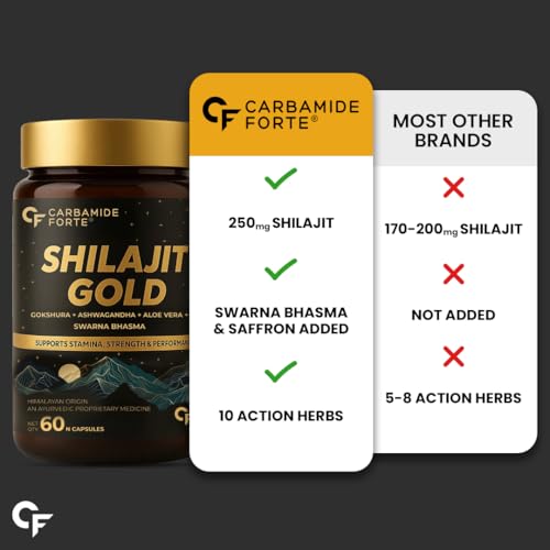 I used this for a while now & it has been a great boost to my energy as well as stamina and I truly feel a spike in my energy levels. feeling a lot more active during the day and what I observed is I even feel energetic especially during workouts. the ingredients are all-natural & it has Ashwagandha,Aloe Vera, Gokshura,Swarna Bhasma and Shilajit Gold which makes me feel good about taking it & not some weird chemicals. These Carbamide Forte shilajit Gold capsules have been a game-changer for my energy and stamina. Made with pure shilajit and gold, they’re effective, high-quality, and have noticeably improved my overall health and vitality with affordable range.I’ve been using these Shilajit capsules for the past few weeks, and I can genuinely feel a difference in my energy levels and stamina. I feel more focused during the day and less fatigued even after long hours of work. What I like most is that it’s a natural supplement with no side effects for me. The packaging is professional, and the capsules are easy to swallow. Teste was Normal. Consume after dinner.Try This supplyment and see mind-blowing changes. I love this Supplement β€οΈ