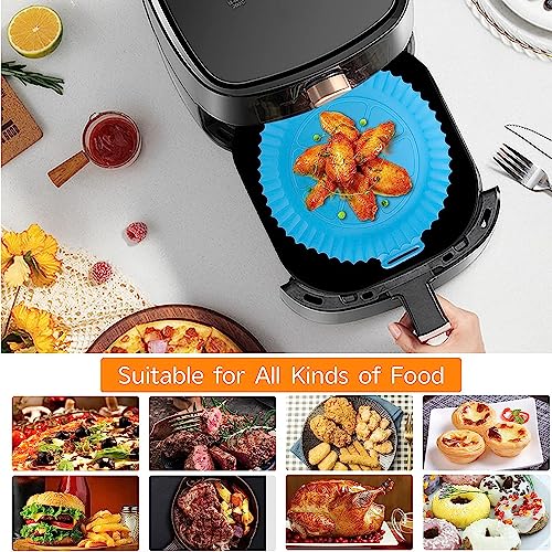- Package Content – Air Fryer Liners I Material: Silicone I Color: Multicolor I Shape: Round I Size: top diameter: 8 inches, bottom diameter: 6.5 inches; height: 2.4 inches and Top 6.5 inches / Bottom 5.5 inches/ Height 1.8 inches.I Raised lines on the base allows proper and even circulation of heat. Safe to be used in oven, microwave, freezer and dishwasher I 3D drainage groove, which facilities the oil to flow to the edge groove and the food tastes more delicious.