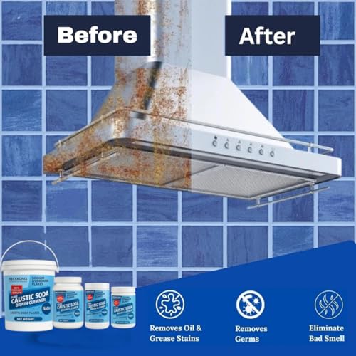 - Multi-Functional Cleaning Solution : Perfect not only for drain cleaning, but also for chimney degreasing, soap making, and cleaning tough stains on iron and aluminum surfaces. A must-have for both household and industrial cleaning tasks.