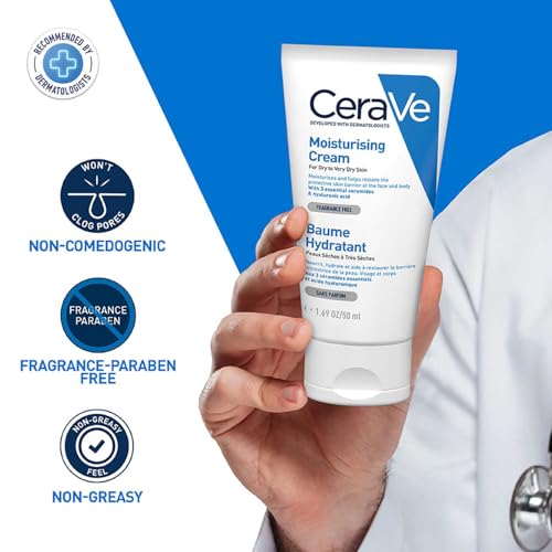 CeraVe Moisturizing Cream For Dry To Very Dry Skin (50ml) – Formulated with 3 Essential Ceramides And Hyaluronic Acid | Non-Comedogenic Moisturizer…