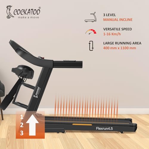 Cockatoo Flex Run4.5M 4.5HP Peak DC Motorized Treadmill for Home, with Massager & 3 Level Manual Incline, Max Speed 16 Km/Hr, Max User Weight…