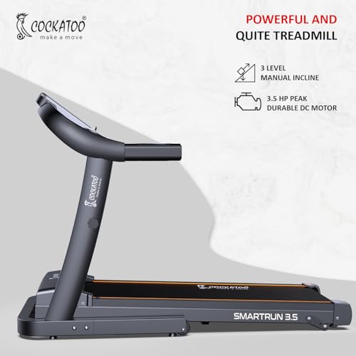 Cockatoo SmartRun3.5 3.5HP Peak DC Motorized Treadmill for Home, with 3 Level Manual Incline, Max Speed 16 Km/Hr, Max User Weight 120Kg,(DIY, Do It…