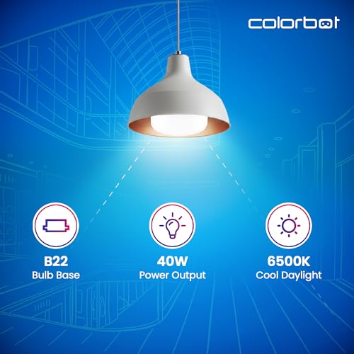 Colorbot SAVR 40W LED Bulb | B22 Base | 4KV Surge Protection, High CRI, High Efficiency & Long Life | 1 Year Warranty | Cool Day Light (6500K)…