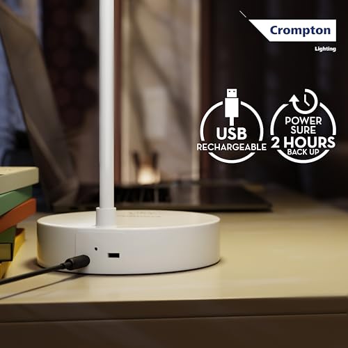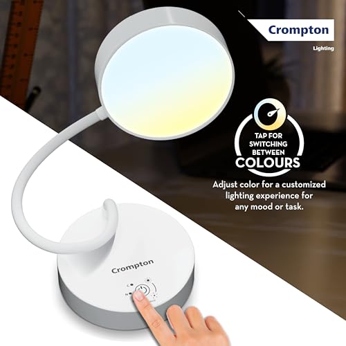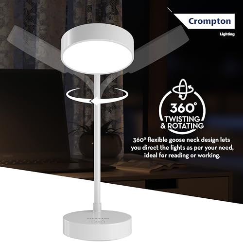 Crompton Plastic Led Deskmate|Table Lamp|Desk Light|5W|Sleek & USB Rechargable|Colour Changing|Smooth Dimming|Flexible & Adjustable Neck|Flame Safe…