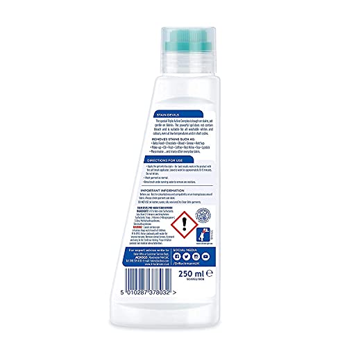 Not for hard stains as prescribed. It is just like a gentle soap doesn’t work like anti stain. Useless product not recommened even for coffee or ink stain i.e normal stain