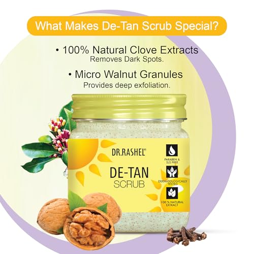 DR.RASHEL De-Tan Scrub For Face & Body (380 Ml) | Revitalizing Tan Removal || Cleanser,Dead Skin|| Blackhead Remover For Deep Exfoliation Scrub