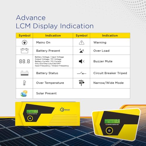 Eastman Solar Pro 1000VA/12V Off Grid Solar Inverter with Utility Power Factor Watt=VA, 43% More loding Capacity | Warranty 36 Months on Product,…