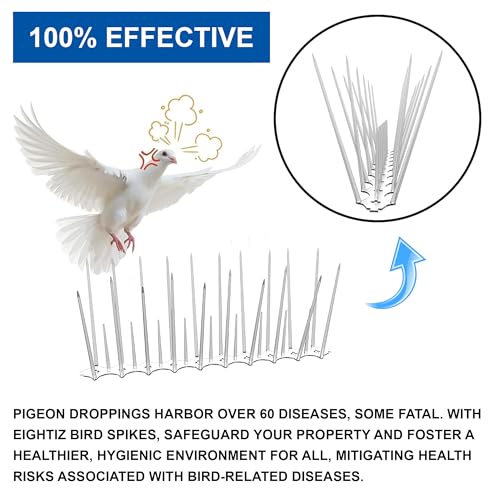 - Enhancing Health and Hygiene: Pigeon droppings harbor over 60 diseases, some fatal. With Eightiz Bird Spikes, safeguard your property and foster a healthier, hygienic environment for all, mitigating health risks associated with bird-related diseases.
