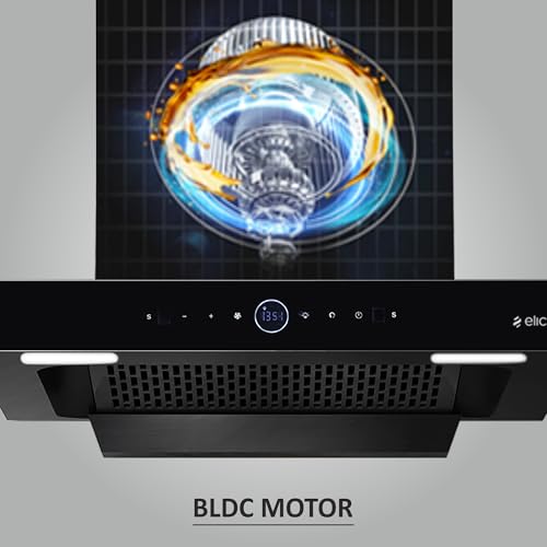 Elica 60cm 1200 m3/hr Filterless Autoclean Kitchen Chimney | FL 600 SLIM HAC MS NERO | Touch + Motion Sensor Control | Black