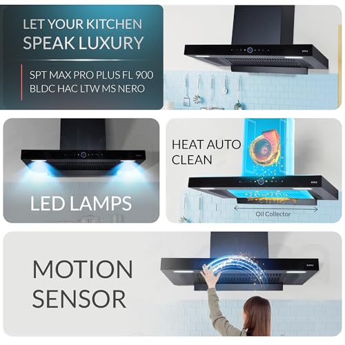 Elica 90cm 1600 m3/hr BLDC Filterless Autoclean Kitchen Chimney with FULL GRILL | 15 Years Motor Warranty | SPT MAX PRO PLUS FL 900 BLDC HAC LTW MS…