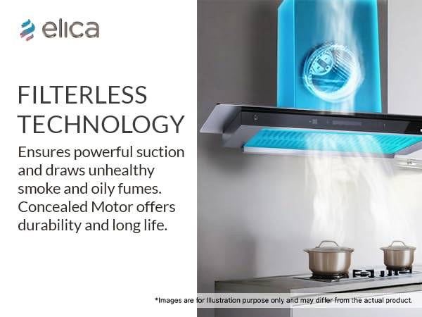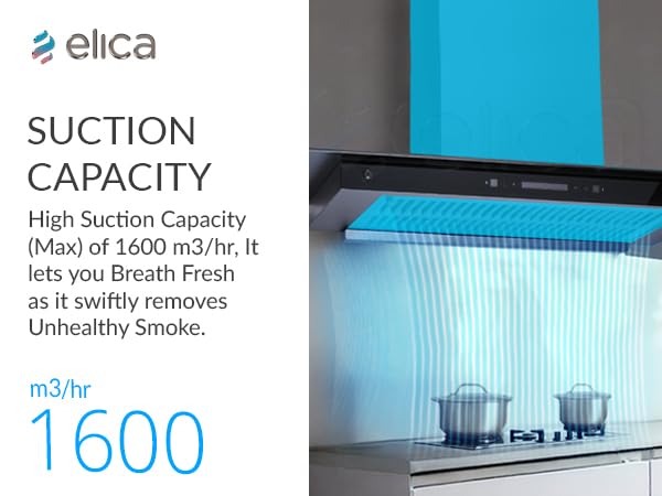 - Filter Type: Filterless | Auto cleaning with Oil collection tray for easy clean | Suction Power: 1600 m3/hr