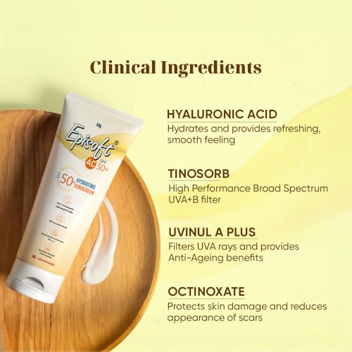 Episoft AC SPF 50 + sunscreen | Maximum Hydration | Protection against both UV-A/UV-B, Water and Sweat Resistance | Lightweight | With anti-aging…