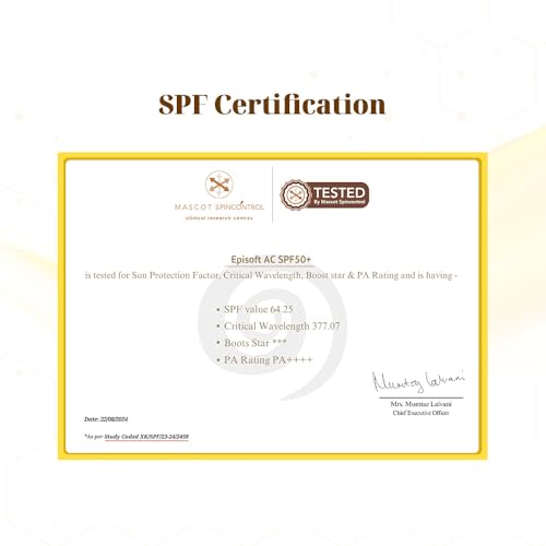 Episoft AC SPF 50 sunscreen offers strong sun protection and has several notable qualities.