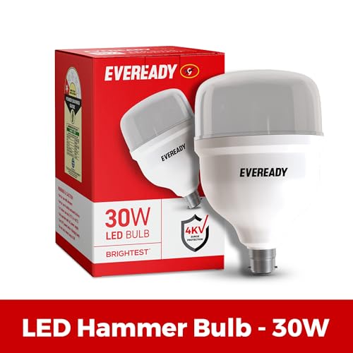 Eveready 30W LED Hammer Bulb with B22 Base, High CRI, 4KV Surge Protection, Energy Efficient & Long Life – Cool Daylight (6500K) for Home &…