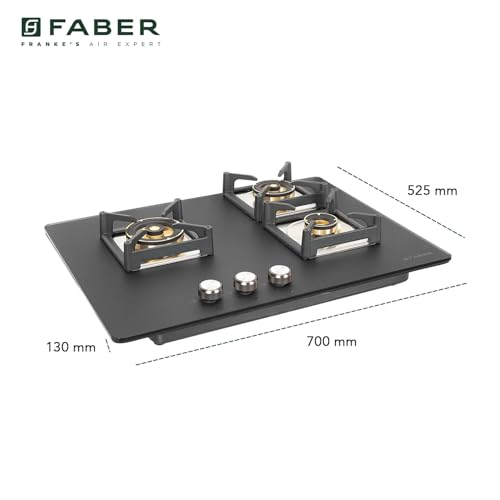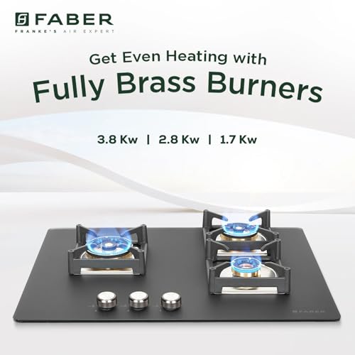 Faber Bella HT 703 BR AI Kitchen Hobtop – 70 cm, 3 Full Brass Burners | Auto Ignition | Toughened Glass Surface | Heavy-Duty Cast Iron Support |…
