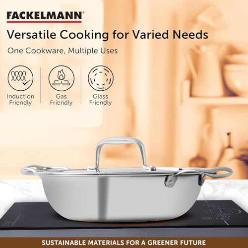 Fackelmann 2.5 Liter Kadai 24 CM, Triply | German Quality | Energy-Efficient | Non-Toxic | Versatile Cookware | Hassle-Free Maintenance | Triply…