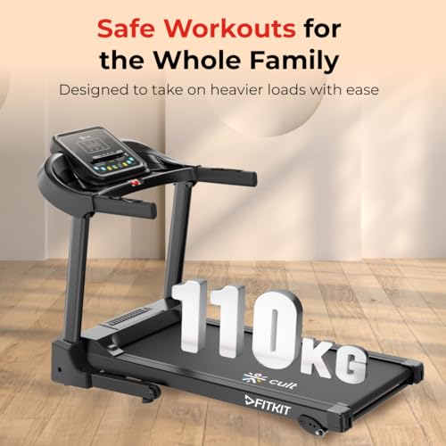 Fitkit by Cult TurboRun BLDC Motor Treadmill (5.5HP Peak) | 12.8km/h Max Speed, 110kg Weight Capacity | 12 Preset Programs, LED Display |…
