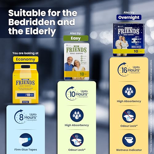Friends Economy Adult Diapers Tape Style – 30 Count (Extra Large) with odour lock, Unisex, Leakproof, Wetness Indicator and Anti-Bacterial…