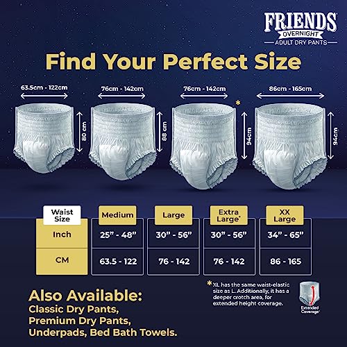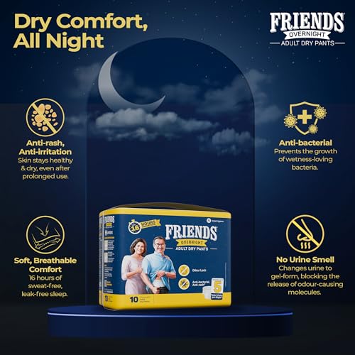 Friends Overnight Adult Diapers Pants Style – 30 Count (Medium) with odour lock, Unisex, Leakproof, Elastic Waist and Anti-Bacterial Absorbent Core…
