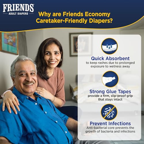 - Friends Adult Diapers medium size with up to 16 hours of protection are also available in sizes L-XL and XL-XXL.