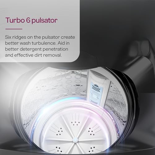 - Fully-automatic top load washing machine with Tidal Wash Technology: Acu Wash Drum’s contours provides low & high tide effect, accurately scrubbing the clothes & the Turbo 6 Pulsator has 6 ridges that create water motions inside the tub for better penetration of detergent and easy dirt removal