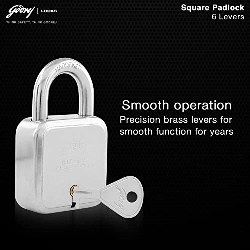 Godrej Locks I Square 6 levers 50mm I 4 Keys I Padlock for Main Door I Gate Lock I Lock for Tool Box, Shutters, Shops & Offices I Corrosion…