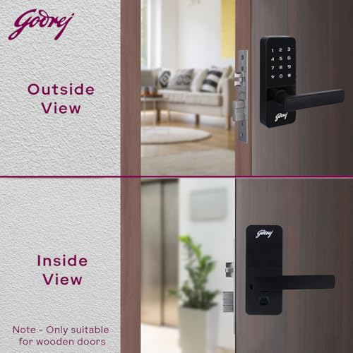 Godrej Smart Lock I Catus Touch I Digital Lock for Main and Internal Wooden Door I 2 in 1 Access I Pin Access I Mechanical Key I Black Finish I 3…