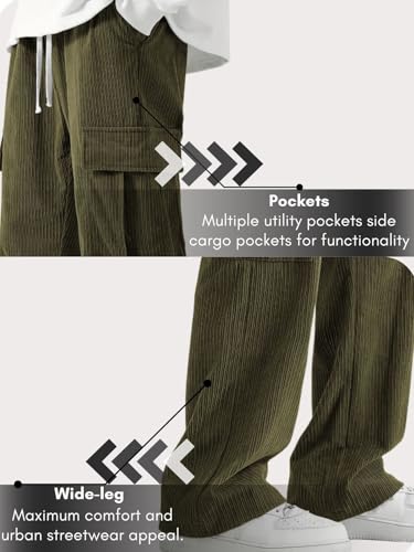 GRECIILOOKS Men’s Loose Low Rise Cargo | Trousers | Baggy Cargo Pants