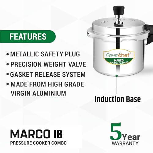 Greenchef Marco Aluminium pressure cooker combo(5ltrs + 3ltrs + 2ltrs pan) Induction compatible – ISI Certified